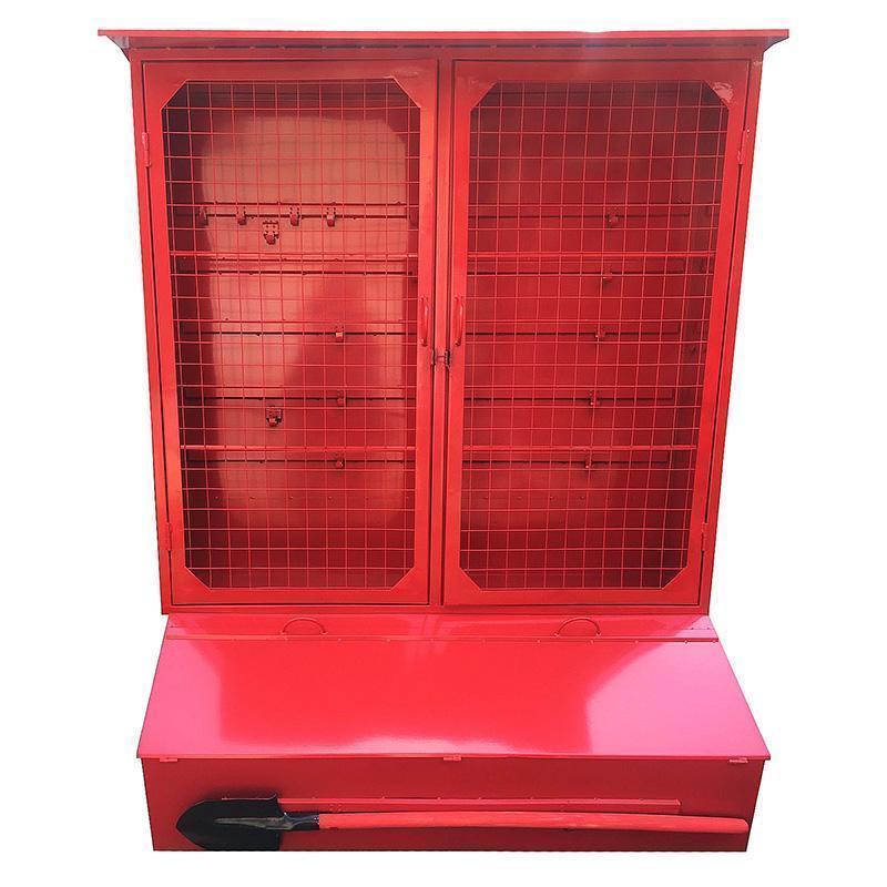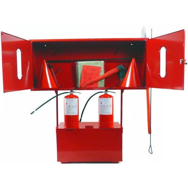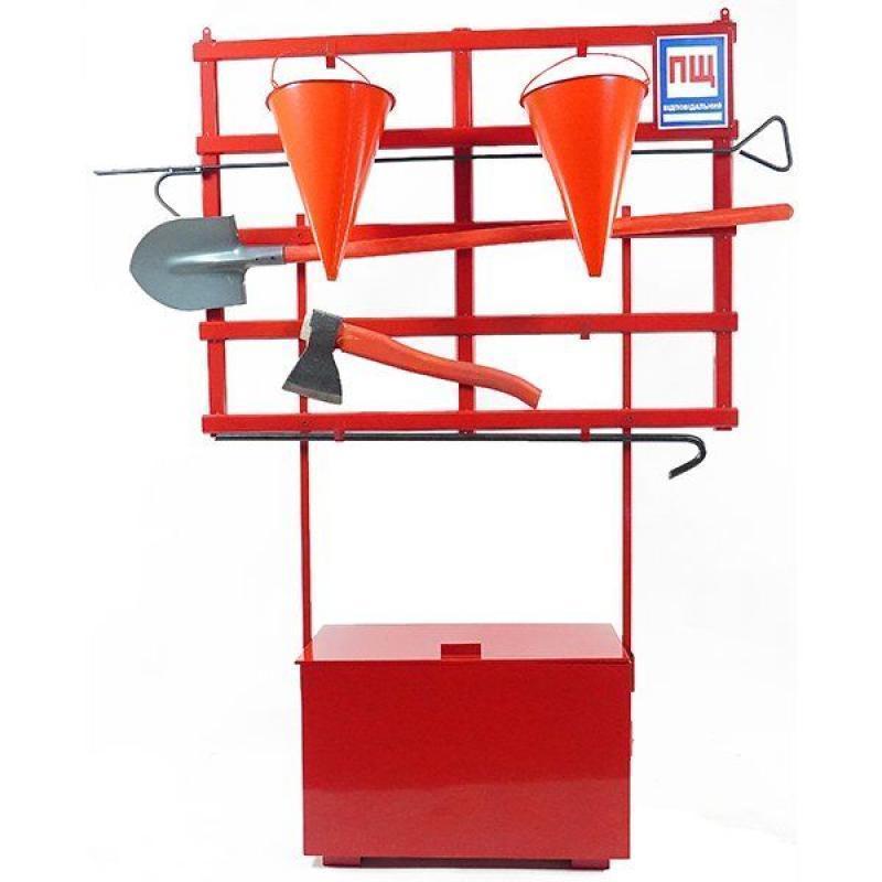 — Пожежний стенд з відкритим щитом. Щит + ящик для піску. Компактна конструкція, зручне зберігання всього інвентарю. Ціна — 5286 грн.