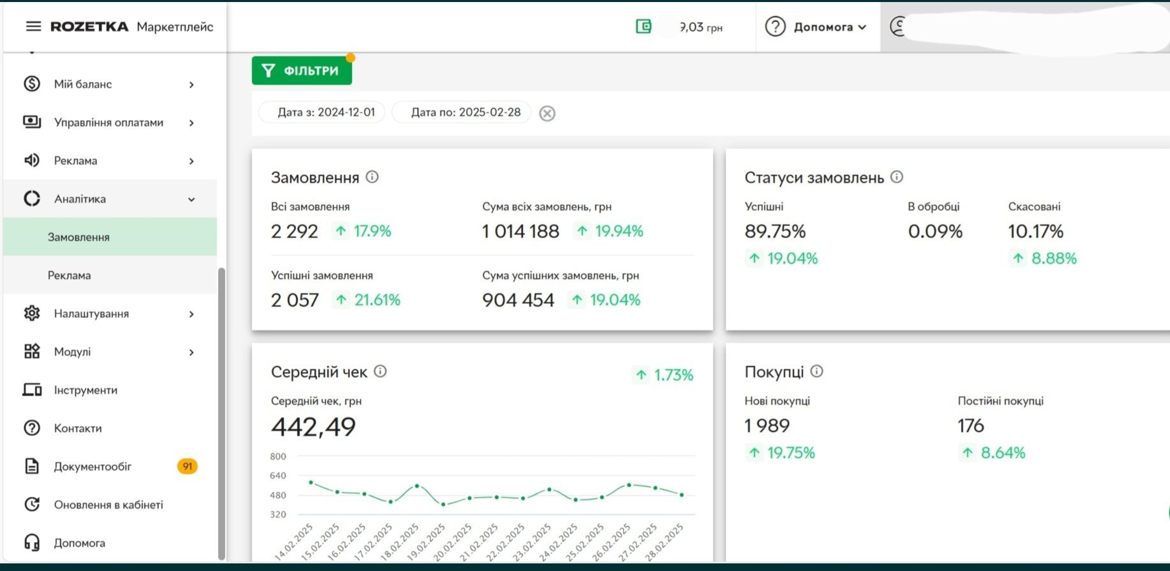 1. Действующий магазин на Rozetka с высоким рейтингом (5.0) и стабильным потоком заказов — около 800 заказов в месяц и более 1000 положительных отзывов.