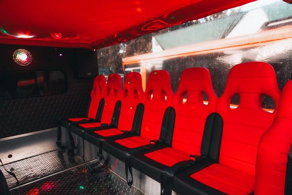 2021 год выпуска, караоке более 40.000 песен, диджей-ведущий, 12 мест, лазерное шоу, барная стойка, диско пол, разработка индивидуального маршрута с остановками, конкурсы, квесты, викторины и юморины, танцпол с мега лазерным шоу и генератором дыма, супер звук