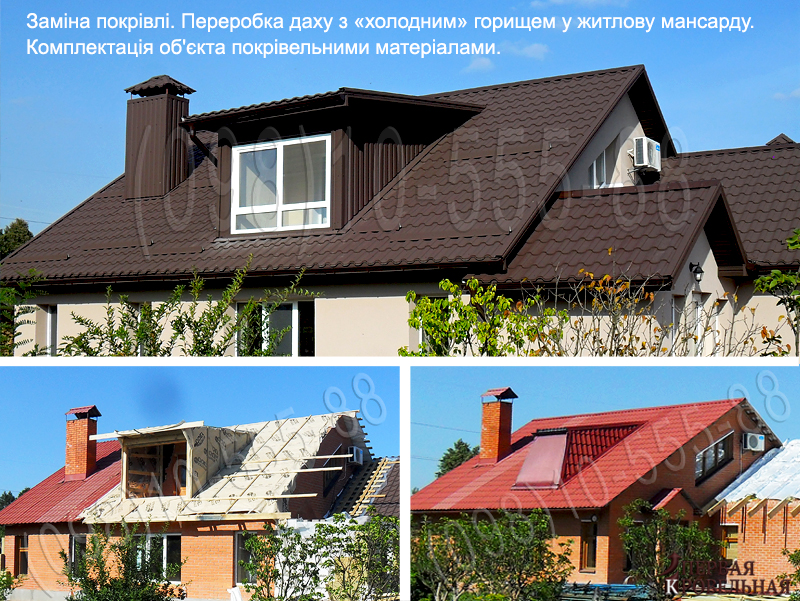 ◆ Заміна покрівлі Київ та Київська область та перероблювання даху будинку;