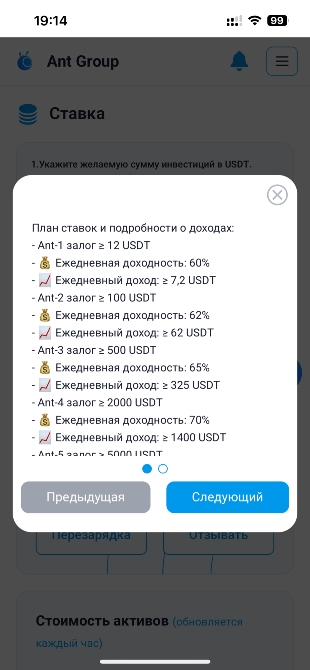 Привет! Нашел интересный проект — antstaking. Здесь можно заработать на росте биткойна, плюс есть бонусы за приглашения.с минимальным вложением от 12 долларов под 60% в день Хочешь посмотреть?