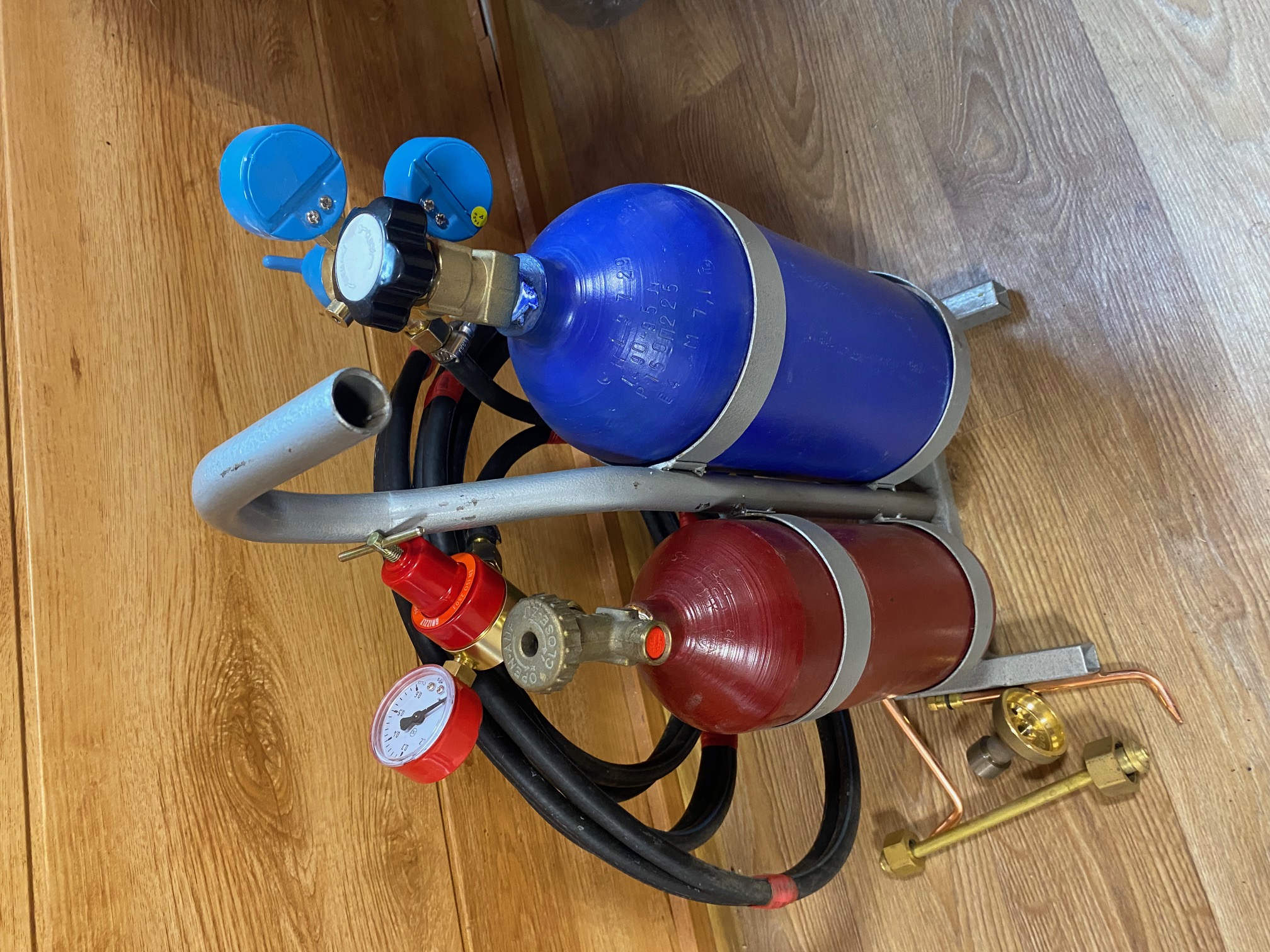 Комплект для газозварювання повністю підігнаний для професійного виконання газозварювальних робіт на виробництві або мережі сервісного технічного обслуговування.