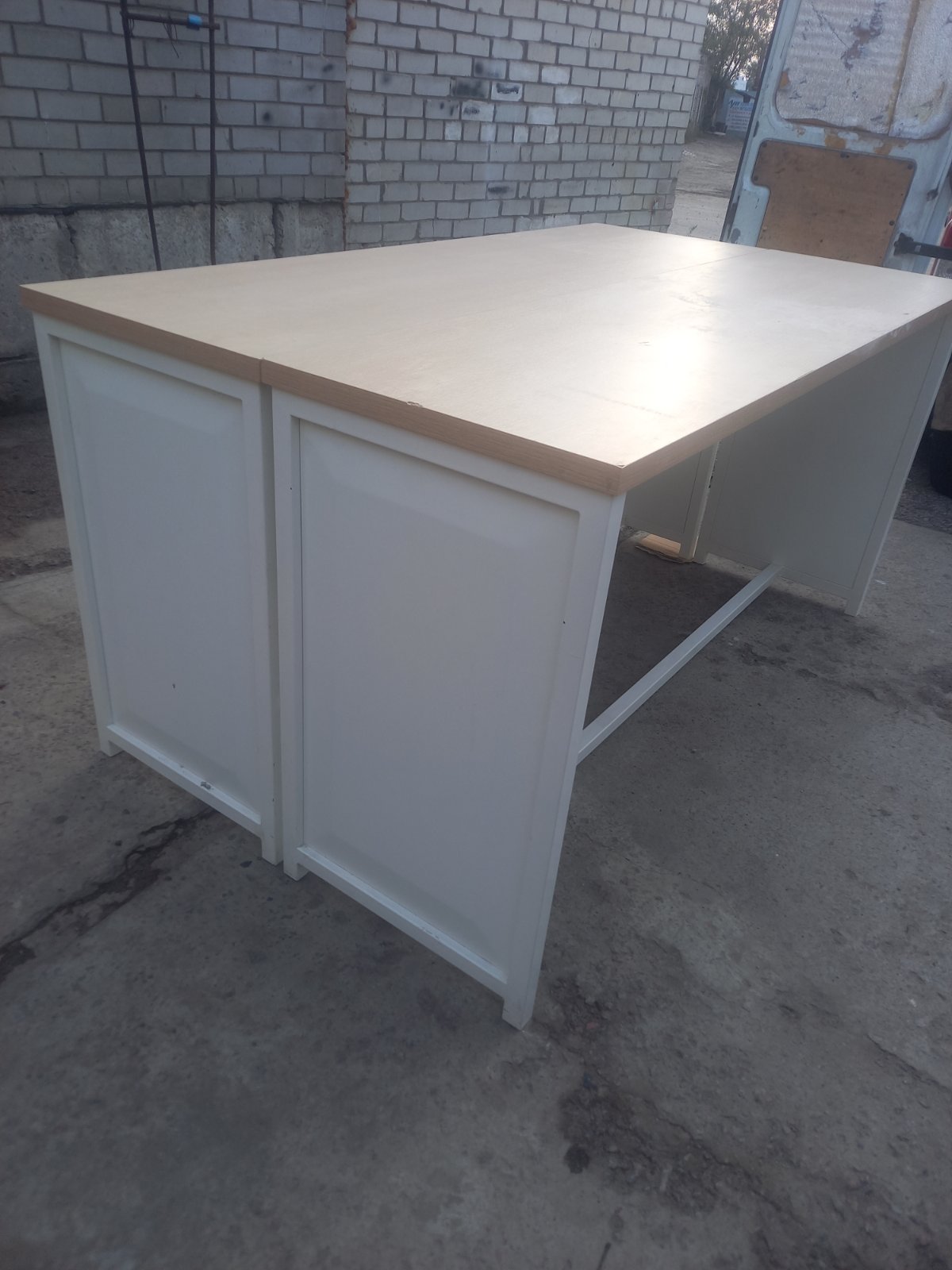 Продам великий міцний стіл б/у . Розмір 2100-2200мм . на1200мм.Є 2200мм на 600мм.висота 1000-1050мм.металева основа стільниця дерево-мдф 50мм.Вартість 3500-7500.Торг...
