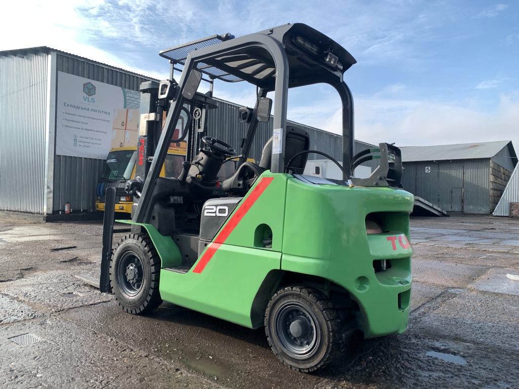 Газ-бензиновий навантажувач TCM (Nissan) з вагами, із напрацюванням 7644 мотогодин. Модель: FHGE20T5. Номiнальна вантажопідйомність 2 тонни. Максимальна висота підйому вантажу 3 метри. Щогла двохсекційна (duplex) яка не втрачає вантажопідйомності при висоті підйому. Двигун газ-бензиновий, з заводським газовим обладнанням, завдяки чому автонавантажувач у теплу пору року можє запускатись вiдразу на газу, без прогріву системи на бензині. 2018 рiк (напрацювання 7644 мотогодин). Меню перекладено англійською мовою для зручності. Коробка перемикання передач надiйна i найпоширенiша на данний час - гiдромеханiка (автоматична із гідротрансформатором). Обладнаний найсучаснішим двигуном, економічним інжекторним Nissan GK25. 4-циліндровий, робочим об'ємом 2.5 літра і потужністю 54 к. с. який славиться своєю надійністю і невибагливістю і без змін встановлюється на автонавантажувачах по сьогоднішній день і головне ремонтопридатний. Колеса 12 діаметра новi переднi пневмо на ведучiй осі, що покращує прохідність автонавантажувача і збільшує його кліренс.