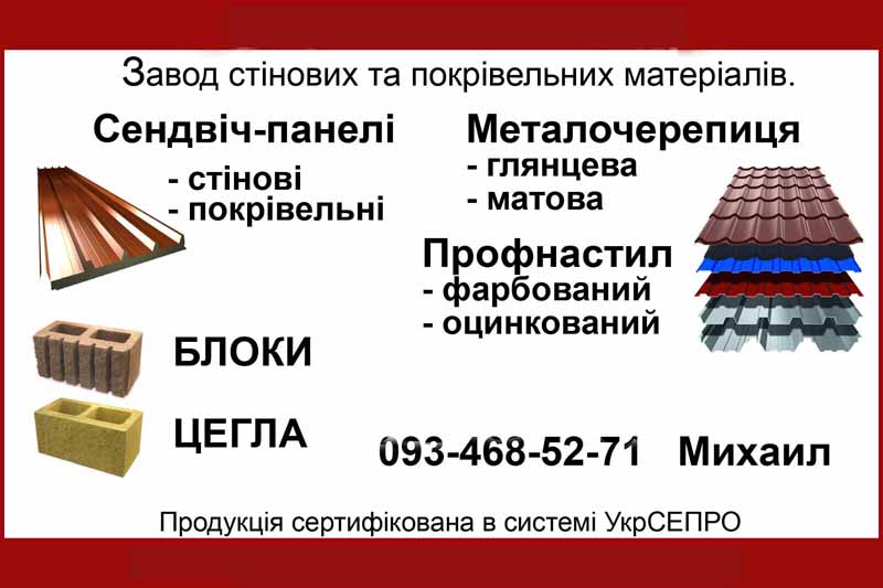 Металлочерепица, профнастил, сендвич-панели, блок, кирпич, елементы гибки..