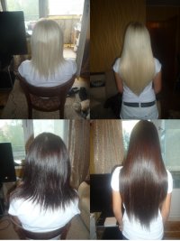 Наращивание по самой щадящей, безвредной и популярной ИТАЛЬЯНСКОЙ ТЕХНОЛОГИИ на капсулы. При наращивании используется только 100% натуральный славянский неокрашенный волос наивысшего качества, мягкий и шелковистый.
