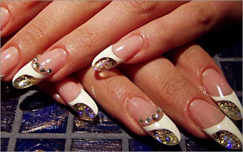 Fun - френч(с использованием фольги, бульонок, страз, сухоцветов, слюды, плоских кусочков акрила, а особенно интересны комбинации материалов, например бульонки и стразы)