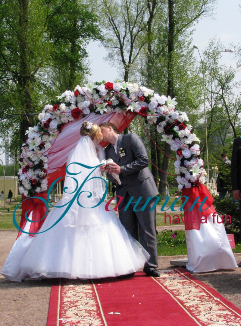 - арка, столик, стойки и дорожка ковровая для выездной церемонии,