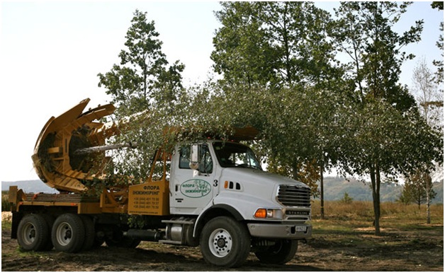 - осуществлять весь комплекс работ по пересадке используя один многофункциональный грузовой автомобиль (пересаживаемое дерево, вместе с жестко зафиксированным комом земли, что обеспечивает абсолютную сохранность корневой системы, транспортируется одним грузовом автомобилем).