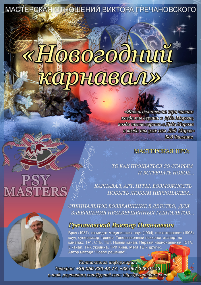 Виктор Николаевич Гречановский, врач (1987), кандидат медицинских наук (1994), психотерапевт (1998), коуч, супервизор, тренер. Телевизионный психолог-эксперт на каналах: 1+1, СТБ, ТЕТ, Новый канал, Первый национальный, ICTV, 5 канал, ТРК Украина, ТРК Киев, Мега ТВ и других. Автор метода «Новое решение».