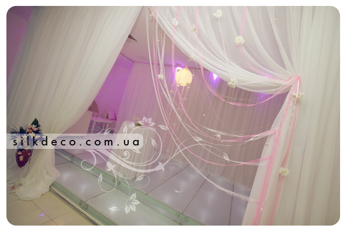 Оформление тканью, в основном, наиболее востребовано при оформлении свадеб. Поэтому есть смысл рассказать, чем мы можем помочь Вам в оформлении вашей свадьбы.