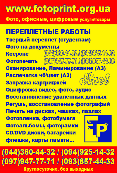 оцифровка фото и видео пленок, аудио кассет и бобин, ксерокс, печать на дисках, кружках, пазлах, переплет на пластиковую пружину, установка металлических уголков, люверсов, печать на мягких магнитах за 1 минуту,