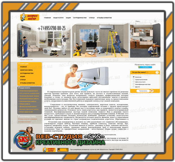Для этого достаточно всего лишь обратиться в нашу Веб-студию "SKS", где Вам предоставят различные предложения и технические возможности конструирования сайта на любой вкус.