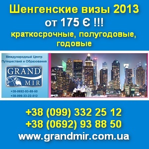 Шенгенская виза 2013 Краткосрочные, полугодовые, годовые