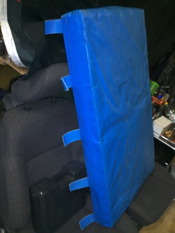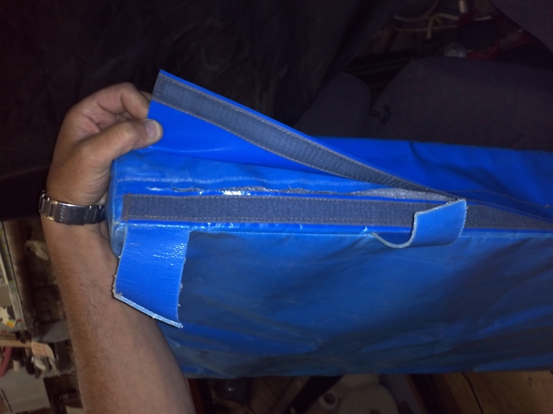 На фото примерный образец ремонта влагостойкого мата - удаление отработанного поролона, наполнение влагостойким и не гниющим материалом (9 см.), удаление сломаной молнии и установка вместо нее клапана на "липучке". Выполняем качественно и в сроки, оговоренные с заказчиком. Возможно так же монтаж матов по борту на месте у заказчика за дополнительную оплату. Цены оговариваются индивидуально.