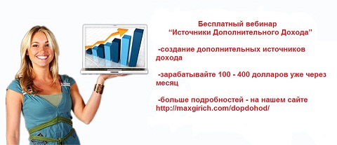 Принять участие в бесплатном вебинаре может любой пользователь интернета. Для того, чтобы стать участником, достаточно просто перейти на наш сайт. http://maxgirich.com/dopdohod/