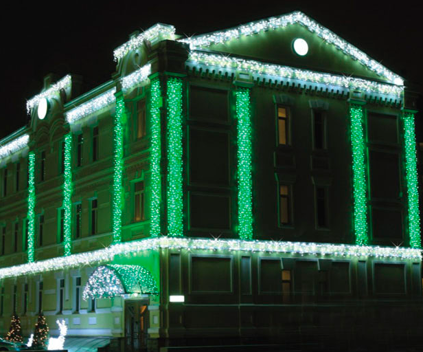 Праздничная иллюминация, новогоднее световое оформление зданий, интерьеров, ландшафтов и деревьев.