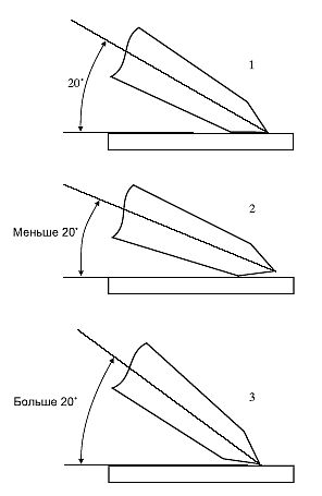 Угол заточки 20° (относительно плоскости клинка).