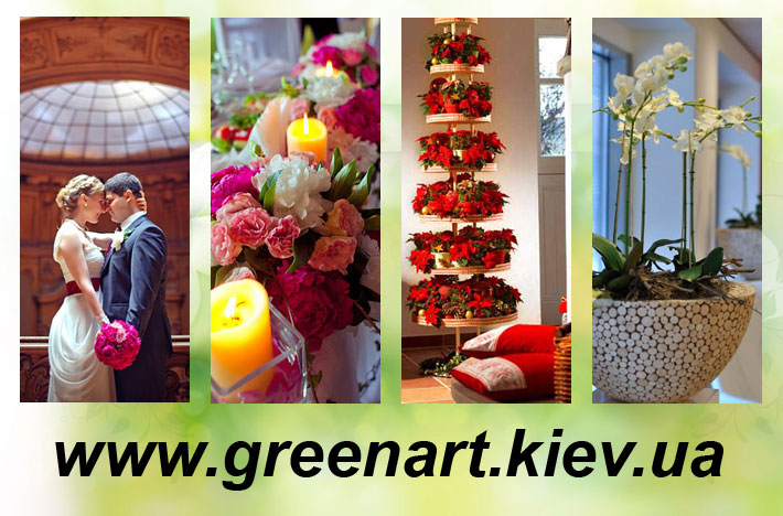 Green Art studio предлагает услуги квалифицированных флористов в Киеве, цветочное оформление свадеб, банкетов, конференций и других праздников.
