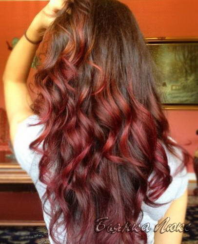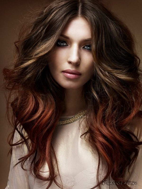 Особенно шикарно «языки пламени» смотрятся на длинных волосах с легкой каскадной градуировкой. Укладка волос элегантными локонами придаст прическе «движение» и дополнительно подчеркнет фантастическую красоту этого модного окрашивания.