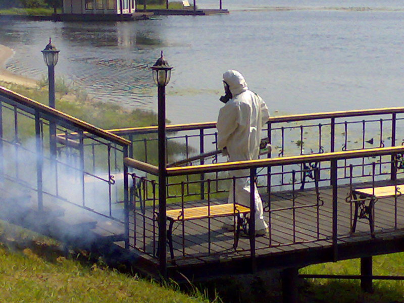 Дезинсекция производится с помощью аэрозольных генераторов холодного тумана, инсектицидным гелем и ловушками.