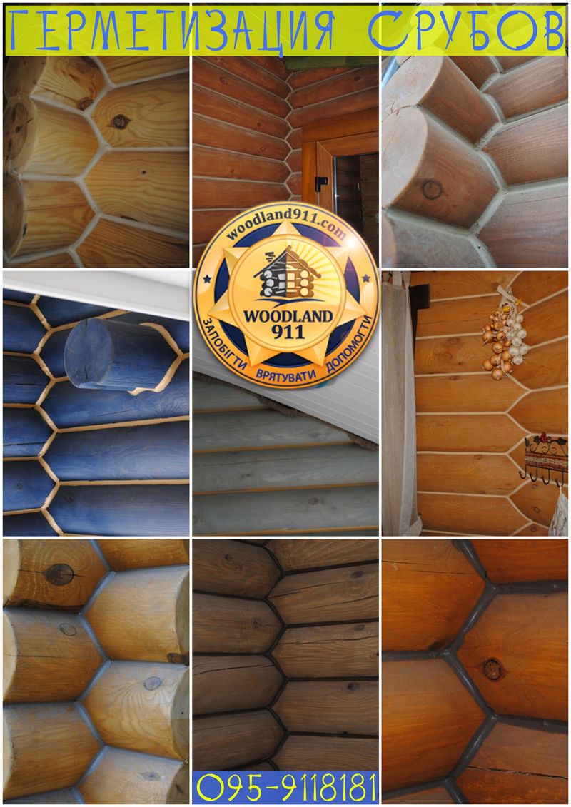 Профессиональная герметизация срубов, американским герметиком. Устранение щелей, трещин, зазоров бревенчатого дома.