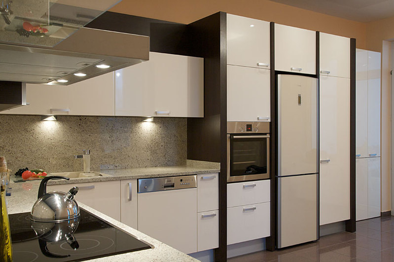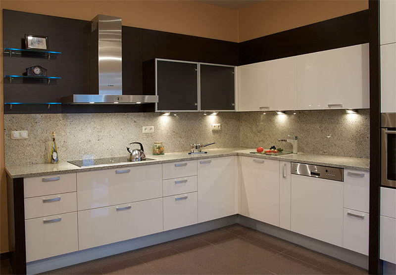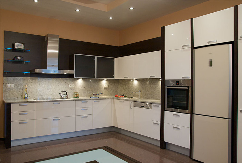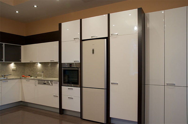 Мебель для кухни под заказ отличается огромным разнообразием цветов, материалов и размеров. Первое на что, обращают внимание покупатели это на фасады кухни. Фасады кухни на заказ изготавливаются из трех основных материалов - это ДСП, МДФ, натуральное дерево. Фасады могут быть изготовлены из экзотических материалов - различные виды стекла стеклоплатистика.