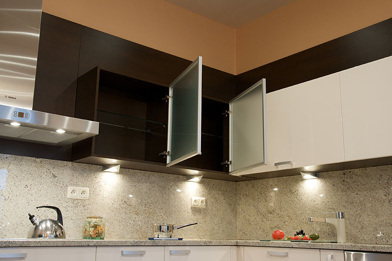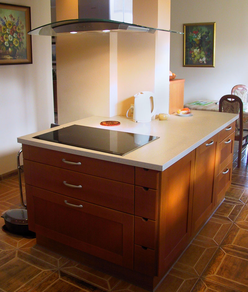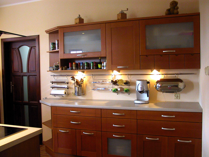 При производстве кухонь с деревянными фасадами мы делаем ставку на сочетание инновационных технологий и дизайна, особое внимание, уделяя использованию только экологичных, безвредных материалов. В отделке кухонь совмещаются натуральное покрытие из дерева и натурального камня для столешниц, которые замечательно смотрятся с отдельными элементами стекла.