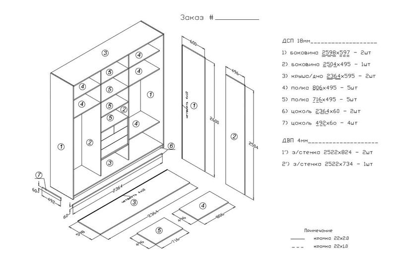 Разработка технической документации для изготовления корпусной мебели по вашим эскизам (кухни, шкафы-купе, межкомнатные перегородки, гардеробные, прихожие, детские, офисная мебель и т. д.).
