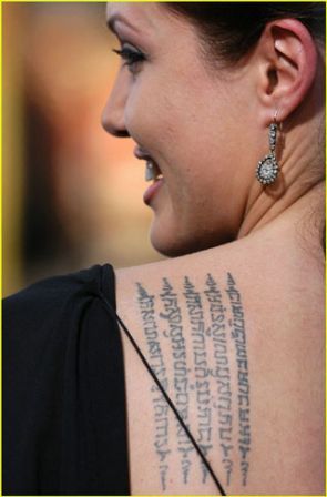 Тату Джоли, буддийские молитвы для тату.