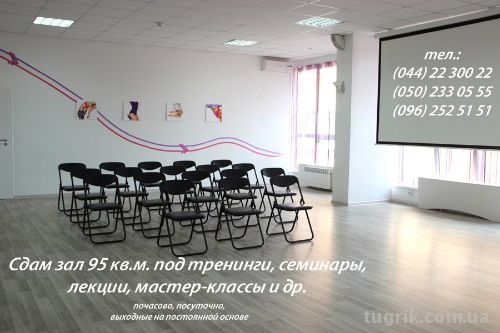 Сдадим в аренду помещение под тренинги по адресу ул. Мишуги 2 (200 м от М. Позняки) почасово, посуточно и на постоянной основе - зал, 95 квадратов - в приложении фотографии. Есть все условия: экран для проектора, раздевалки, душевые, ресепшн, музыкальное сопровождение, другое оборудование.Рядом кафе, где готовят бизнес ланчи по доступным ценам.