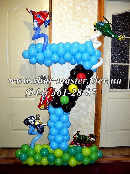 Воздушные шары на детский праздник Киев, цифры и фигуры из шариков.