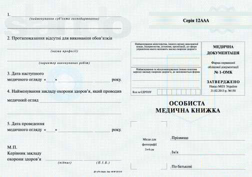 Медицинская книжка ( Нового образца № 1-ОМК )- 220 грн