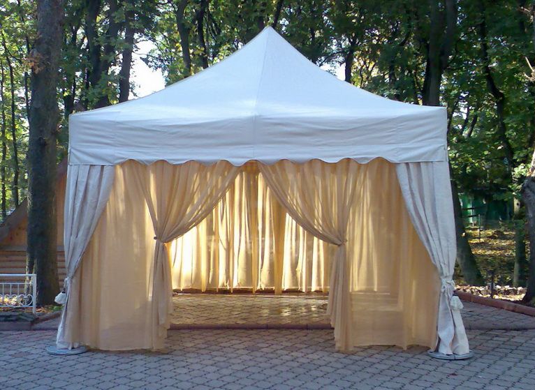 Фирма МИСТЕРТЕНТ предлагает в аренду шатры для выездной свадебной церемонии, торжественного события и презентации. VIP - шатры, великолепные, эстетичные тенты серии ROYAL, украсят Ваше торжественное событие, придадут ему изящество, неповторимость и шарм. Праздничные VIP- шатры предлагаются в двух размерах 4х4м и 6х4м в бежевом цвете. Комплектуются шатры специальными балдахинами, бежевыми шифоновыми стенами, а также подвесным потолком, который изготовлен из полиэстера, чтобы скрыть элементы тентовой конструкции потолка. Каркас шатра шпонирован под цвет дерева.