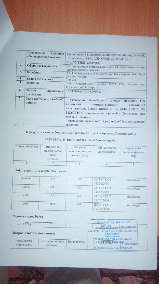 - Протоколи випробувань на продукти харчування від санітарно-епідеміологічної служби України (для митниці та торгівлі ) від 1836, 00грн